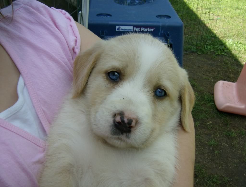 And, I just realized, you need more. Check out the eyes on this little one! She's the only brown one of the bunch: Check out her eyes - Neisa claimed this one. We have decided that we're keeping one. I just couldn't let him go. Meet Phinneas: More pics later - there are 4 more puppies!